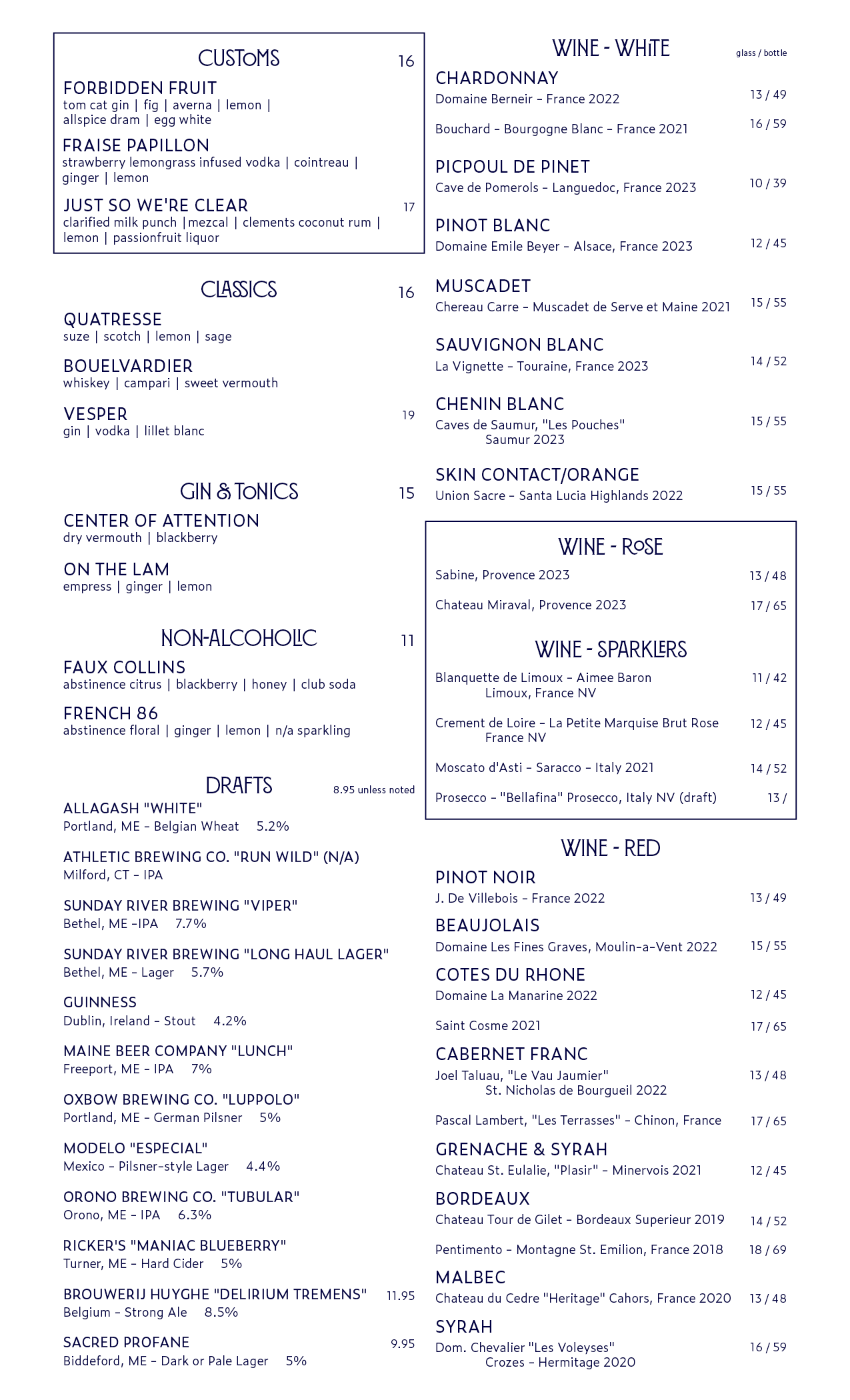 *Menu subject to change*